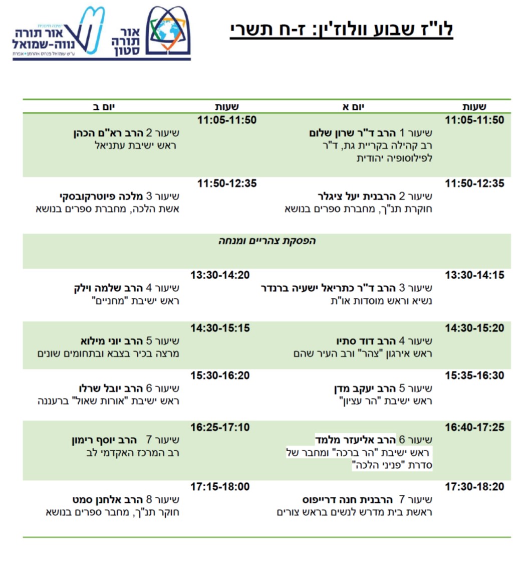 השנה הלימוד יתקיים בימים ראשון – שני ז'-ח' בתשרי בבית המדרש.